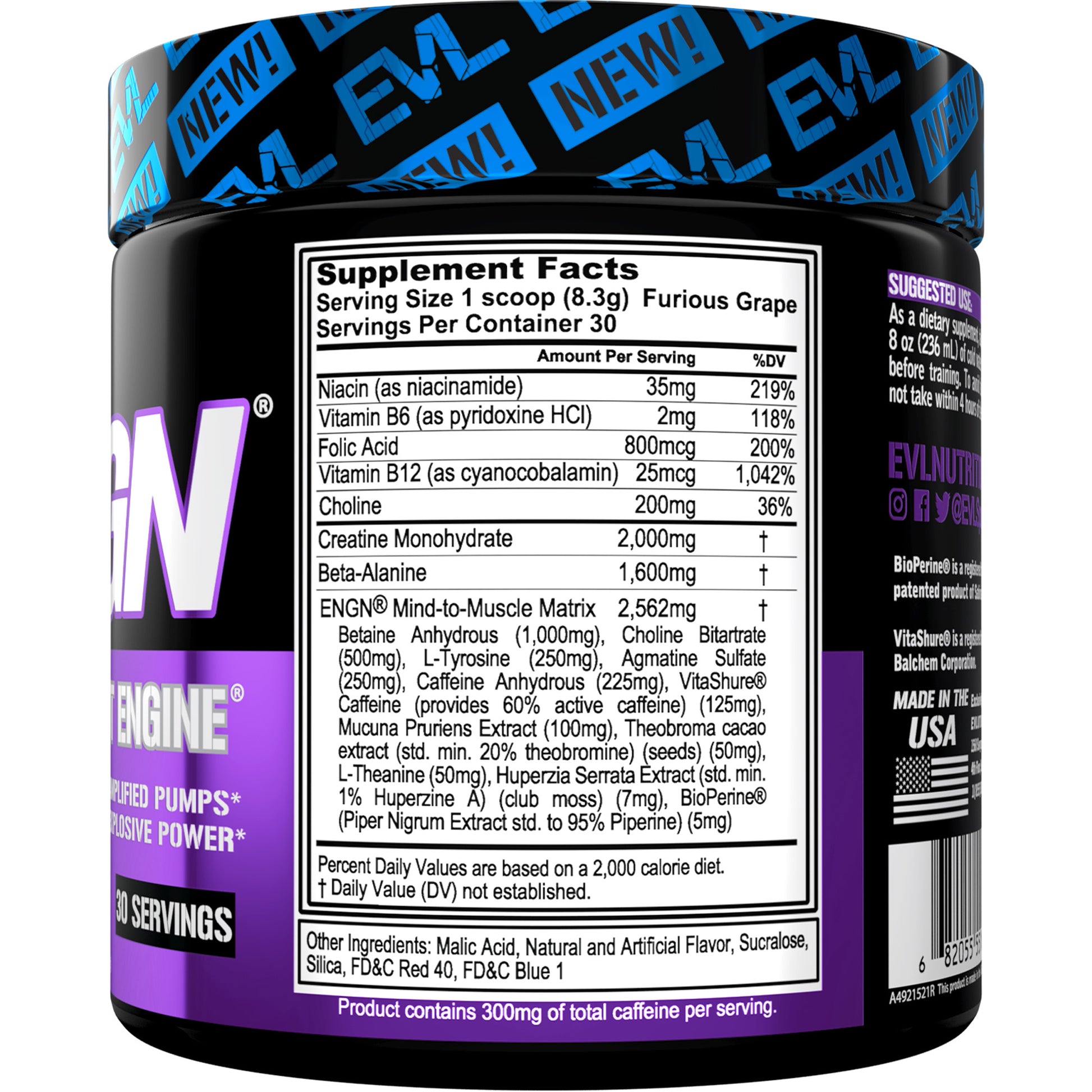 ENGN uses an innovative 2-Stage process to create more intense, lasting energy without the crash. ENGN combines pure caffeine and B-vitamins for quick uptake, along with a second stage of energy created by VitaShure, which creates a longer lasting energy response and is designed to minimize the post workout crash.