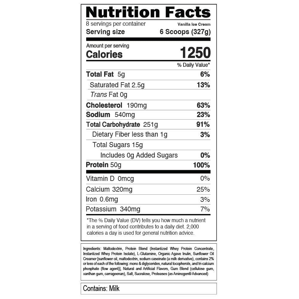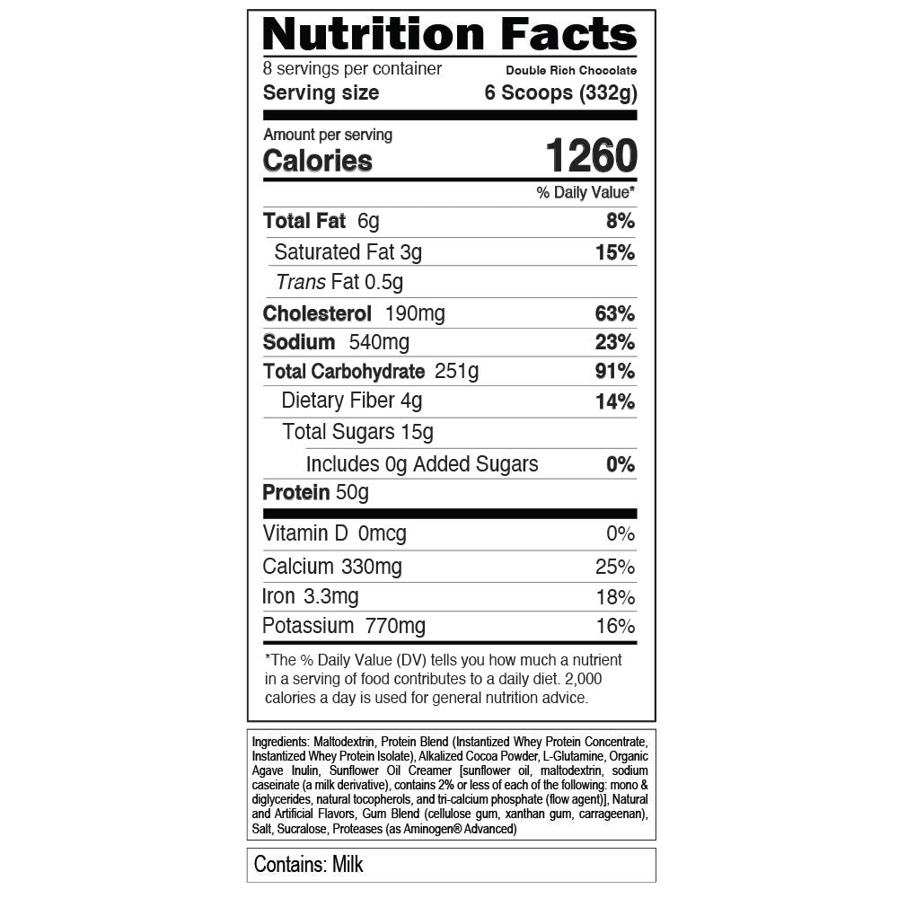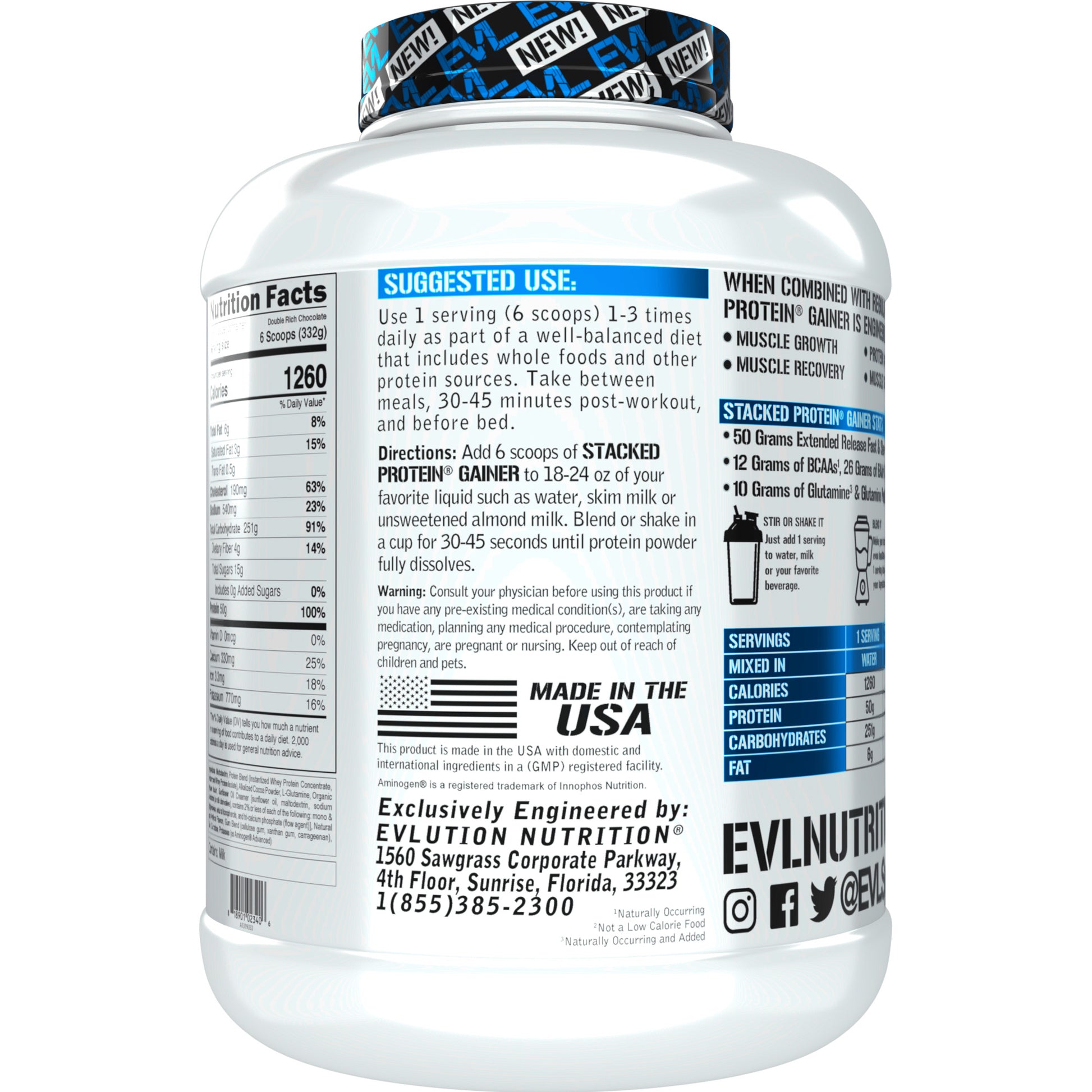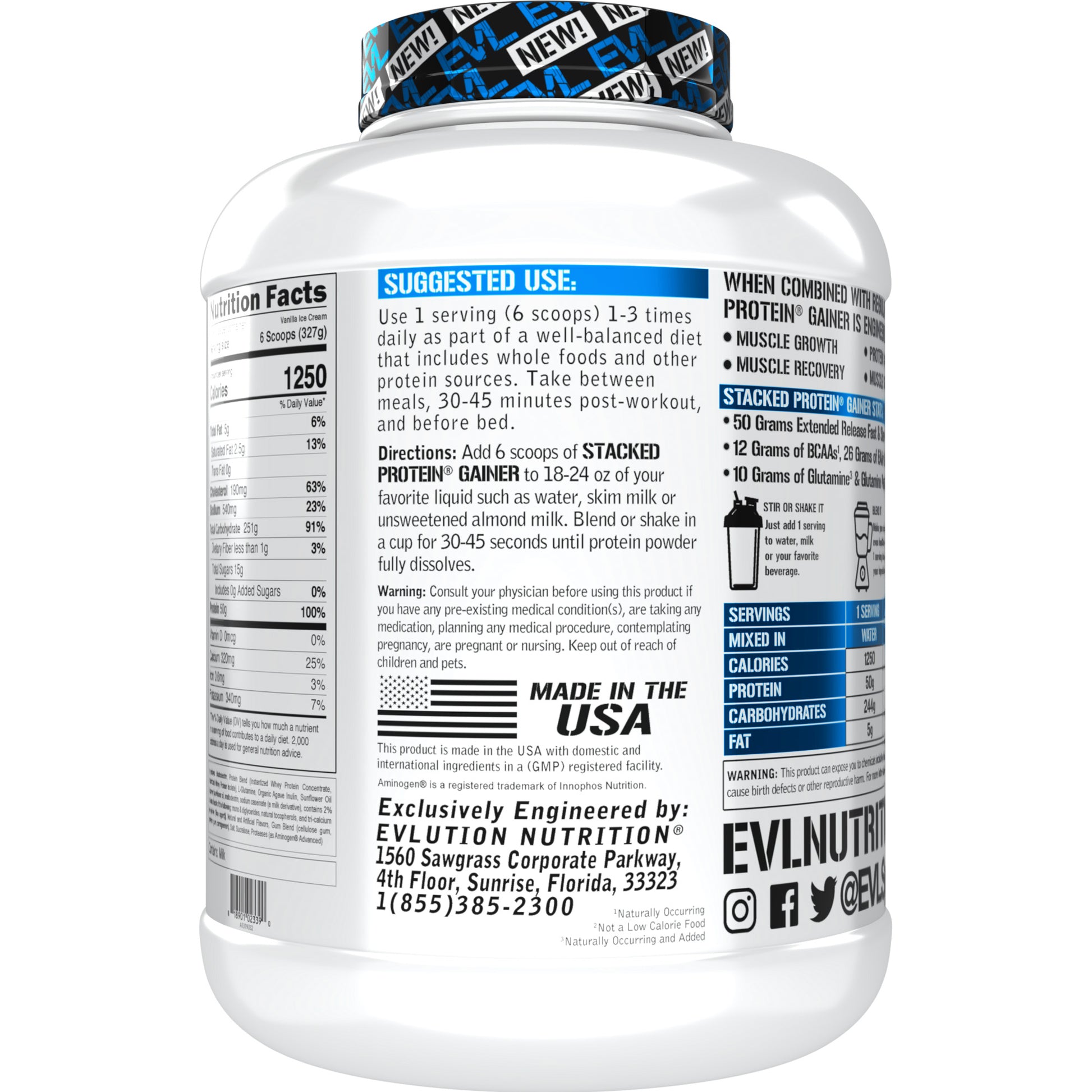 Add 6 scoops of Stacked Protein Gainer to 18-20 oz of your favorite liquid such as water, skim milk or unsweetened almond milk. Shake in a cup for 15-20 seconds until protein powder fully dissolves.