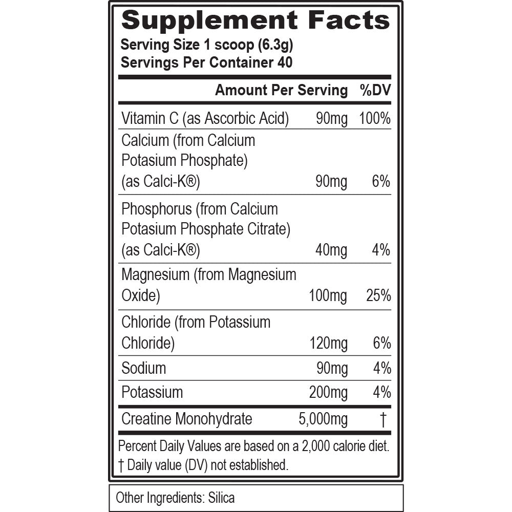 As a dietary supplement, mix 1 scoop of CREATINE5000+Electrolytes in 8 oz. of water, juice, or protein drink of choice post-training.