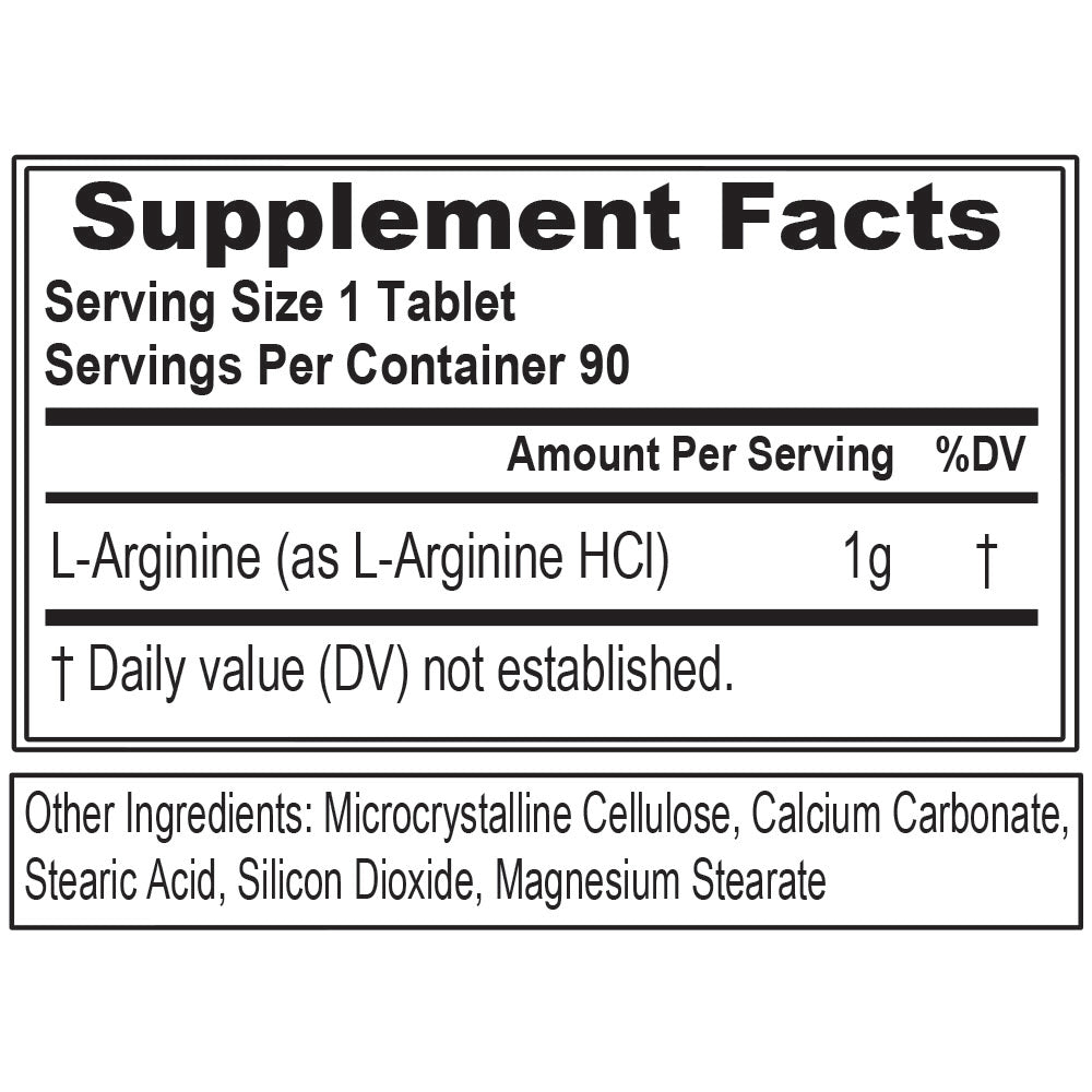 As a dietary supplement, take 1 tablet of L-ARGININE daily preferably with a meal or as recommended by a physician. Warning: Not for use by those with pre-existing medical conditions or taking any medications; those under the age of 18; or women that are contemplating pregnancy, pregnant or nursing. Keep out of reach of children and pets. Store in a dry place away from direct sunlight. *These statements have not been evaluated by the Food and Drug Administration. This product is not intended to diagnose, treat, cure or prevent any disease.