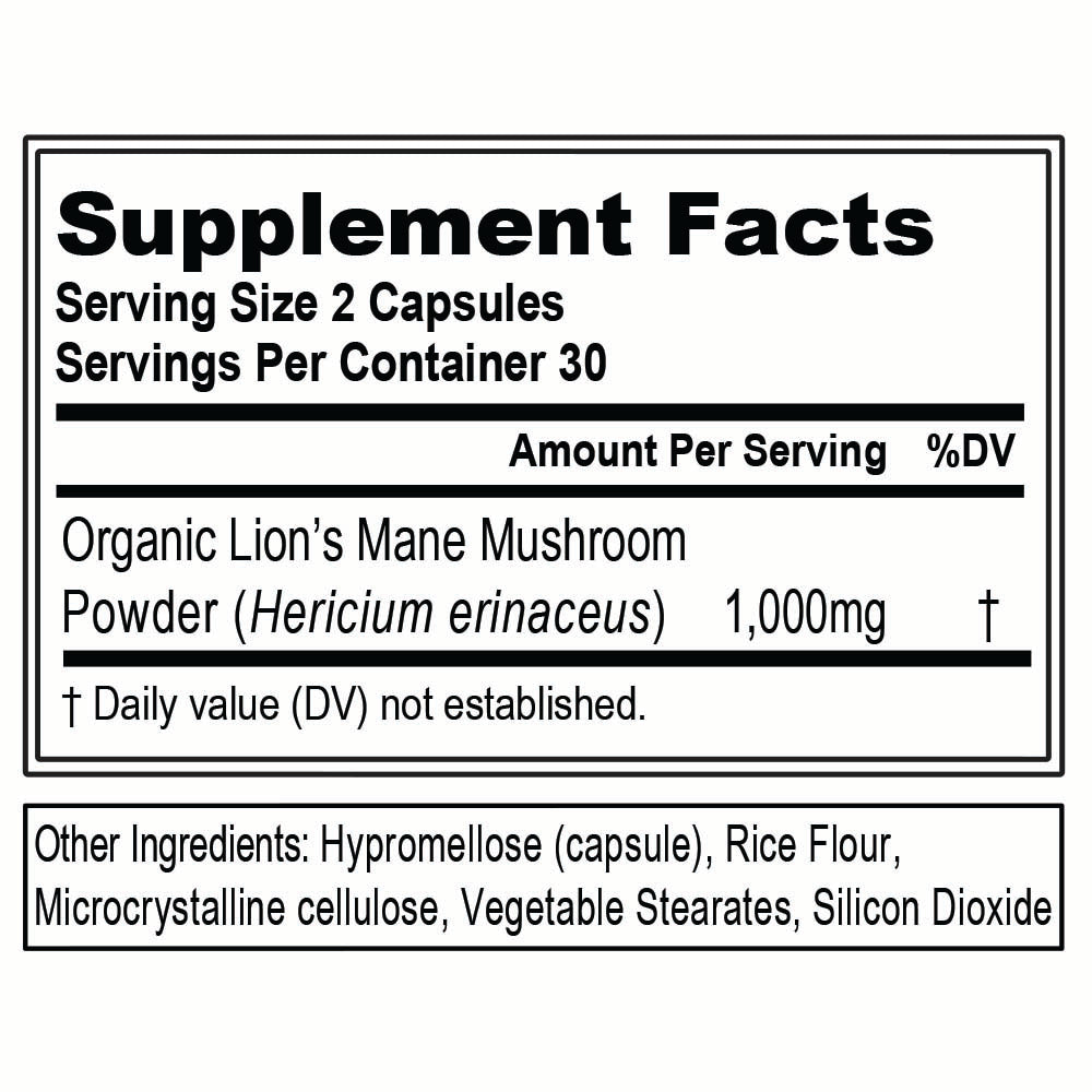 - 1000mg Organic Lion’s Mane Mushroom Powder