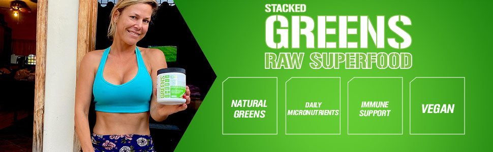 As a dietary supplement, mix 1 scoop of Stacked Greens ™ in 8-10 ounces of cold water (vary amount of water by taste preference).