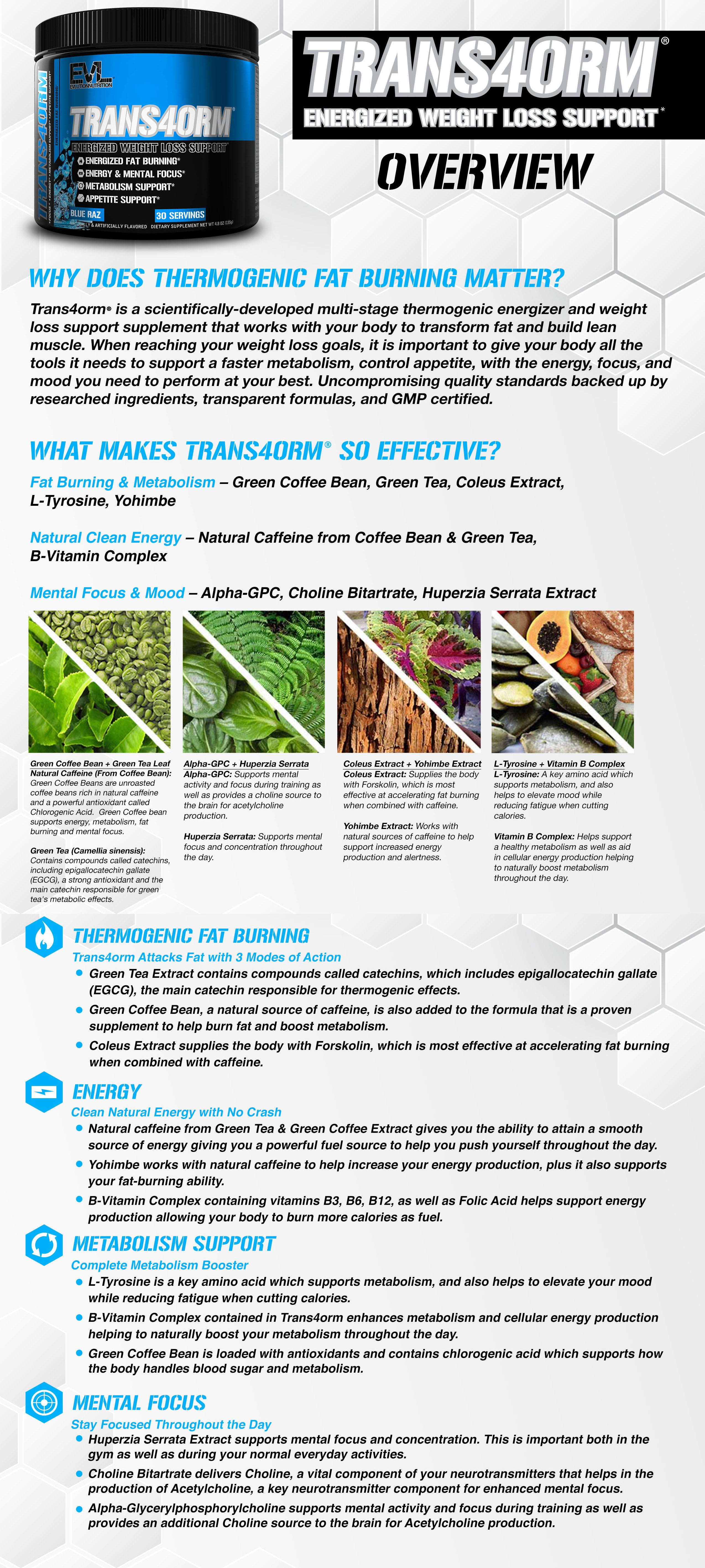 As a dietary supplement, take 1 serving in the morning on an empty stomach and 1 serving 4-6 hours later in the afternoon. Do not exceed 2 servings in a 24 hour period. To support overall health, drink 8 glasses of water over the course of a day. TRANS4ORM may be taken for up to 8 weeks but should then be discontinued for a minimum of 4 weeks.