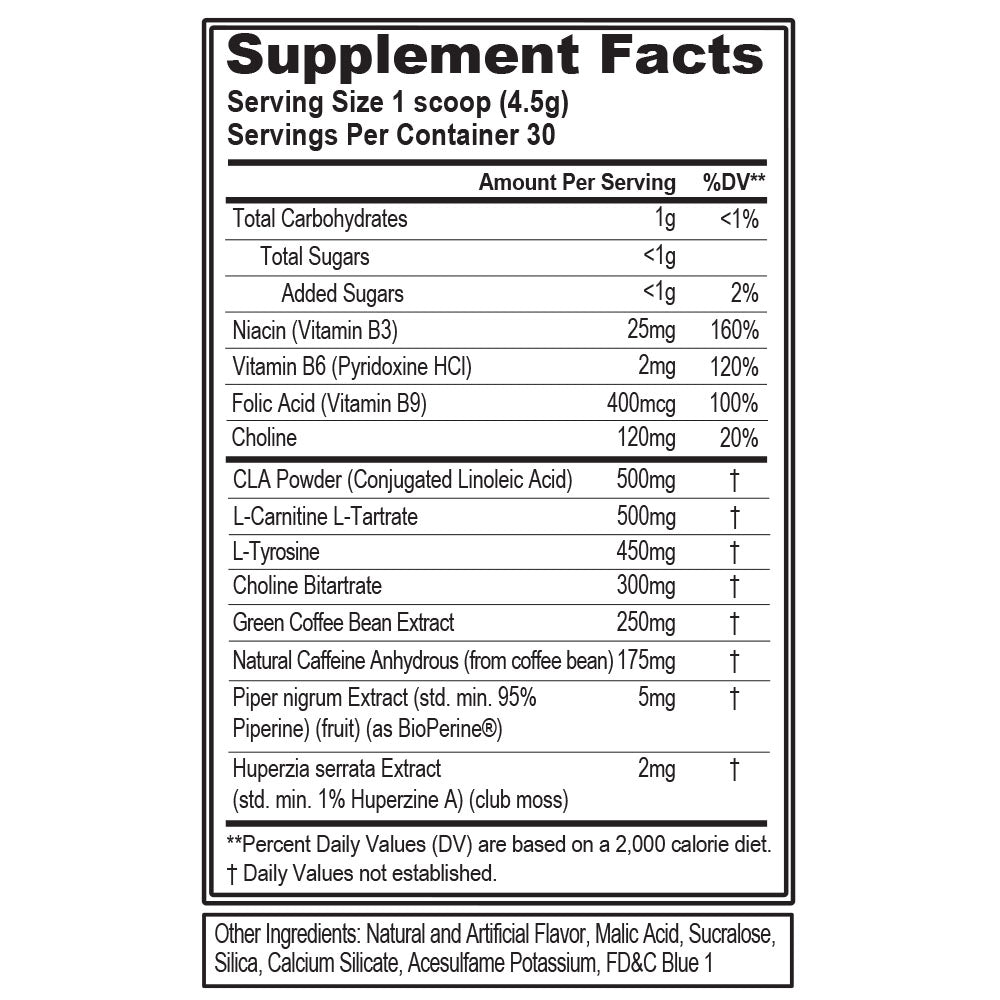 Warnings: Not intended for use by persons under age 18. Do not exceed recommended dose. Do not consume caffeine from other sources, including but not limited to, coffee, tea, soda and other dietary supplements or medications containing phenylephrine or caffeine. Contains caffeine. Do not use for more than 8 weeks. Consult with your physician prior to use if you are pregnant, nursing or taking medication, including but not limited to, MAO inhibitors, antidepressants, aspirin, nonsteroidal anti-inflammatory drugs or products containing phenylephrine, ephedrine, pseudoephedrine or other stimulants. Consult your physician prior to use if you have a medical condition, including but not limited to, heart, liver, kidney or thyroid disease, psychiatric or epileptic disorders, difficulty urinating, diabetes, high blood pressure, cardiac arrhythmia, recurrent headaches, enlarged prostate or glaucoma. Discontinue 2 weeks prior to surgery or if you experience rapid heartbeat, dizziness, severe headache or shortness of breath.